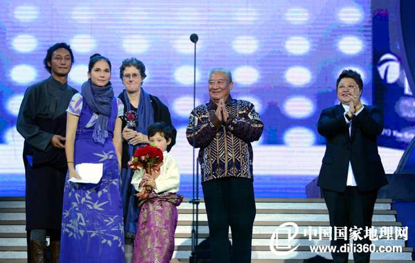 2013年11月8日晚,由天津電視臺、香港鳳凰衛(wèi)視和聯(lián)合國開發(fā)署駐華代表處聯(lián)辦的“2013‘中國因你更美麗’——《泊客中國》盛典”,在 北京水立方隆重舉辦。這次活動是表彰投身于中國社會主義建設(shè)并有著杰出貢獻(xiàn)的外籍人士。甘肅省原副省長、中國藏學(xué)研究中心副總干事洛桑靈智多杰先生、韓紅 女士給為甘肅甘南藏區(qū)打開自立謀生方式,帶領(lǐng)民族傳統(tǒng)工藝走向國際市場的益西德成一家頒獎。