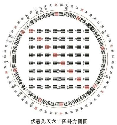 1.按上面方法將任何一個(gè)先后天八卦圖單獨(dú)180度旋轉(zhuǎn)和另一個(gè)做類似的排列將會(huì)得到另外24個(gè)卦,而單獨(dú)一個(gè)做180度旋轉(zhuǎn)是因?yàn)閮蓚(gè)圖就會(huì)順逆成極端。