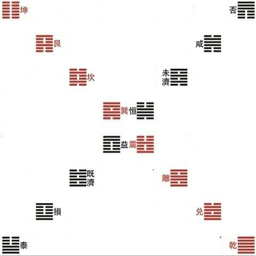 2.西南宮位坤卦的六個(gè)陰爻對應(yīng)西北宮位乾卦六個(gè)陽爻。